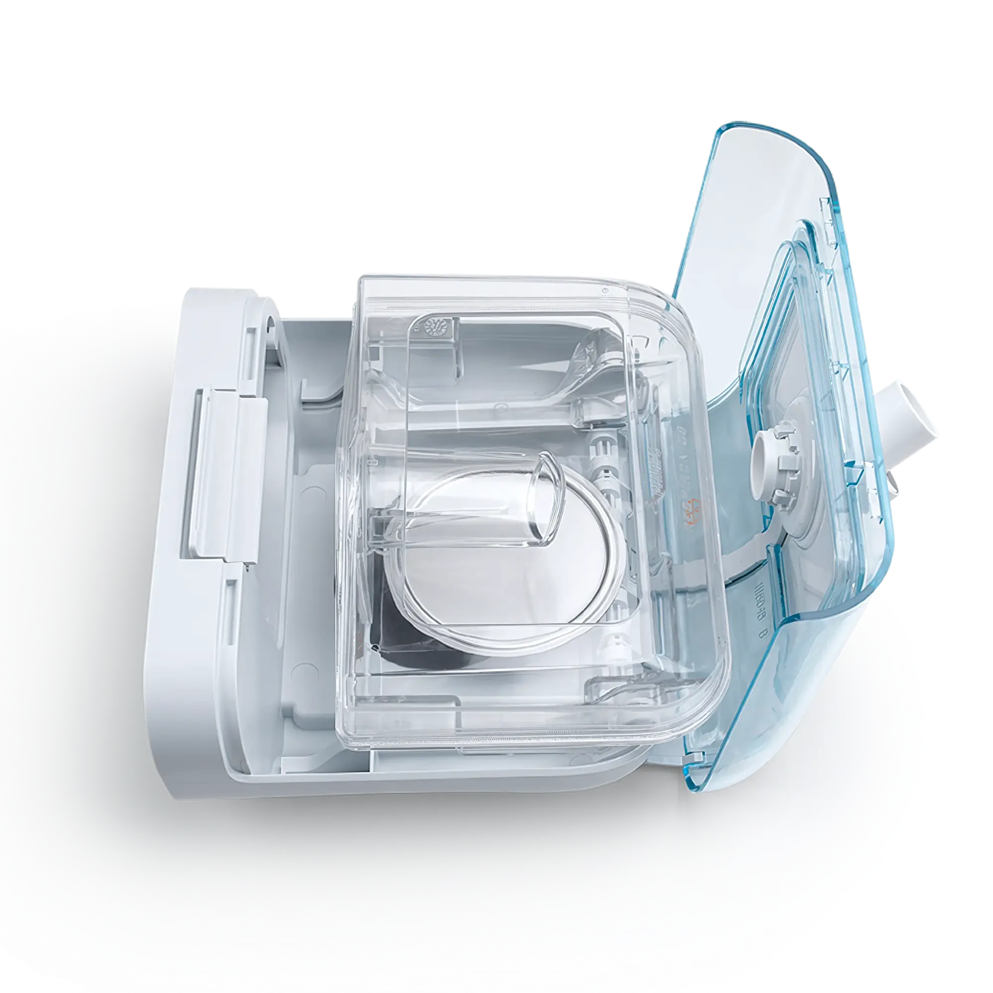 Top view with blue panel open for Philips Respironics DreamStation Heated Humidifier
